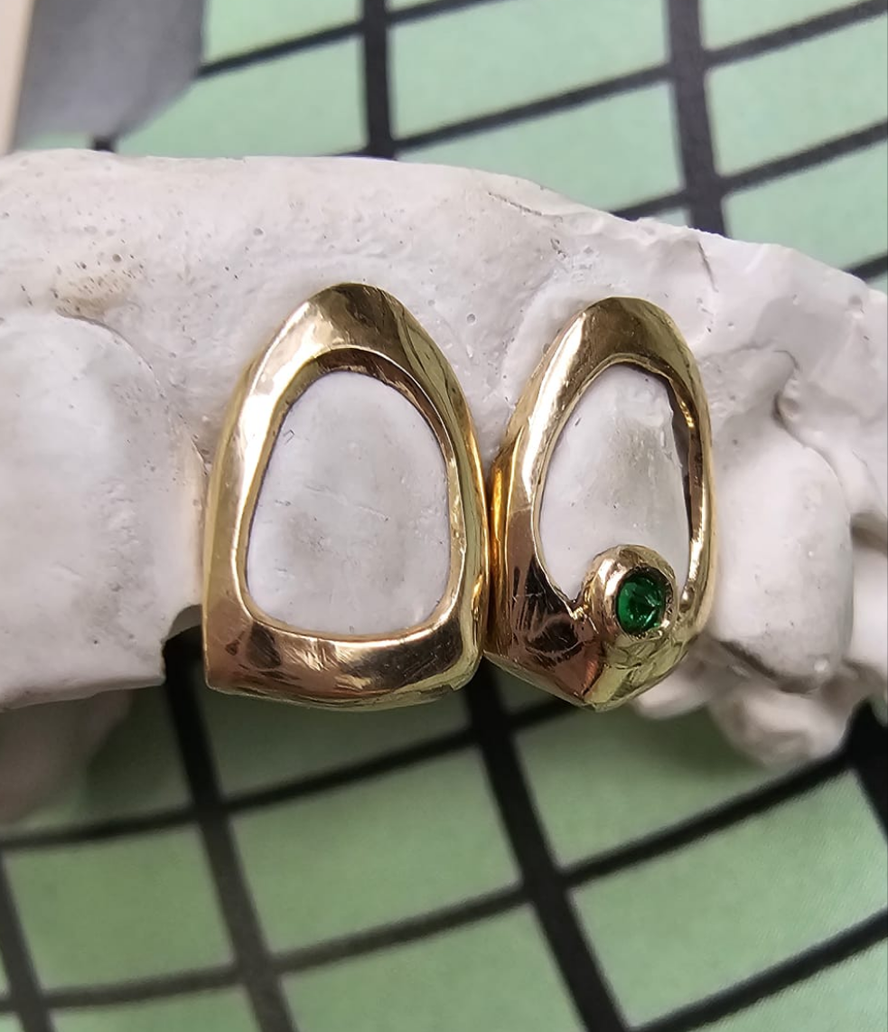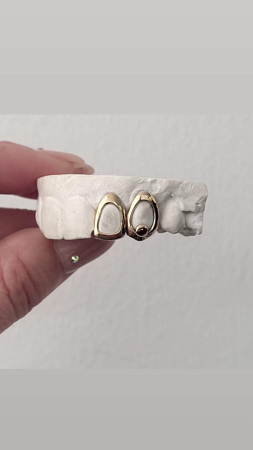 Window set with stone covers two teeth and you can choose any teeth on your top or bottom 8 and is available in silver, yellow or white dental gold, 10k, 14k and 18k solid yellow, rose and white gold (not plated). Our quality is guaranteed and comes with a standard shiny/ mirror finish. To add more caps, select the quantity and specify which teeth you want made.