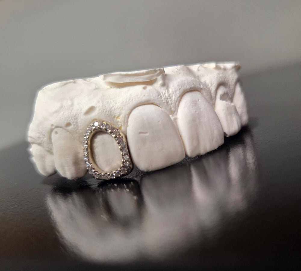 Our diamond grillz are set with natural diamonds (NOT LAB GROWN) of high grade clarity of the diamond (VS grade). It is one of the most expensive diamond clarity grades. In simple terms, the higher quality the diamond is, the more it reflects light and shines. That's why we only go for the best