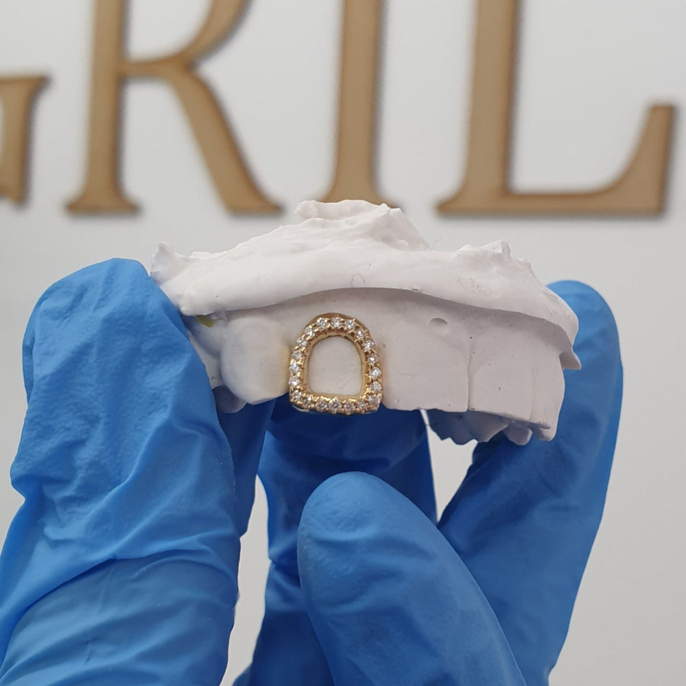 Diamond window design (VS quality) covers one tooth and you can choose any tooth on your top or bottom 8. The design is available in 10k, 14k and 18k solid yellow, rose and white gold (not plated). Our quality is guaranteed and comes with a standard shiny/ mirror finish. To add more caps, select the quantity and specify which teeth you want made.